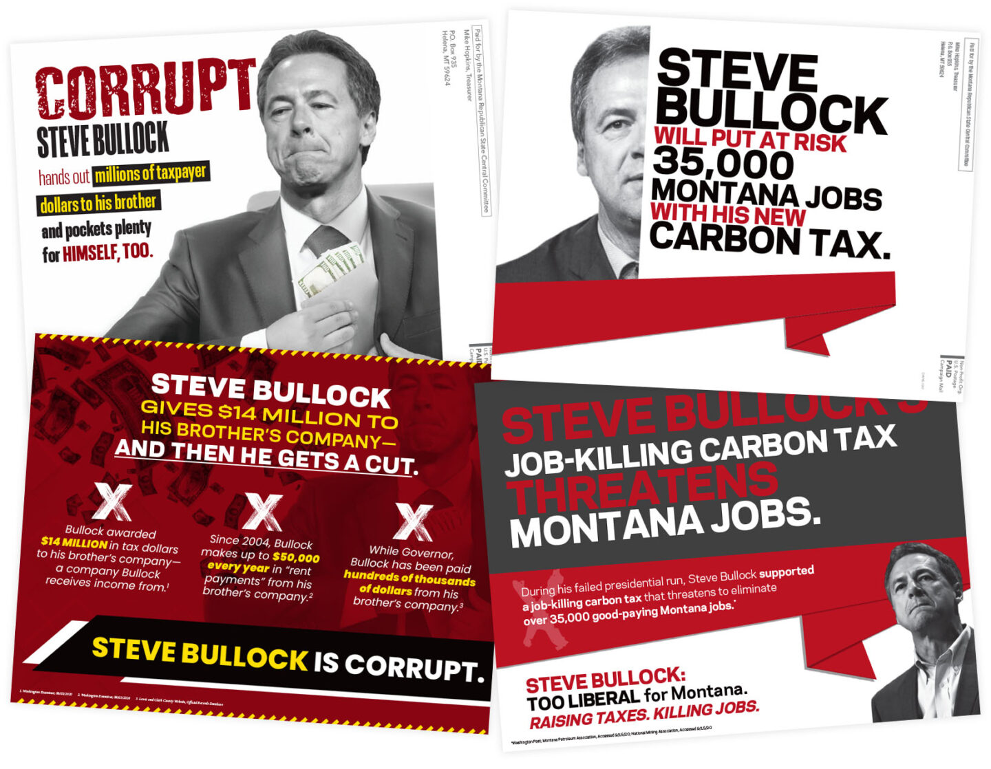 Arena focused on defining Bullock as a radical liberal who was out of touch with Montana values and misused taxpayer funds. The political strategy would rely on targeted messages and standout creative that would help define Bullock (see a sample of that creative below).